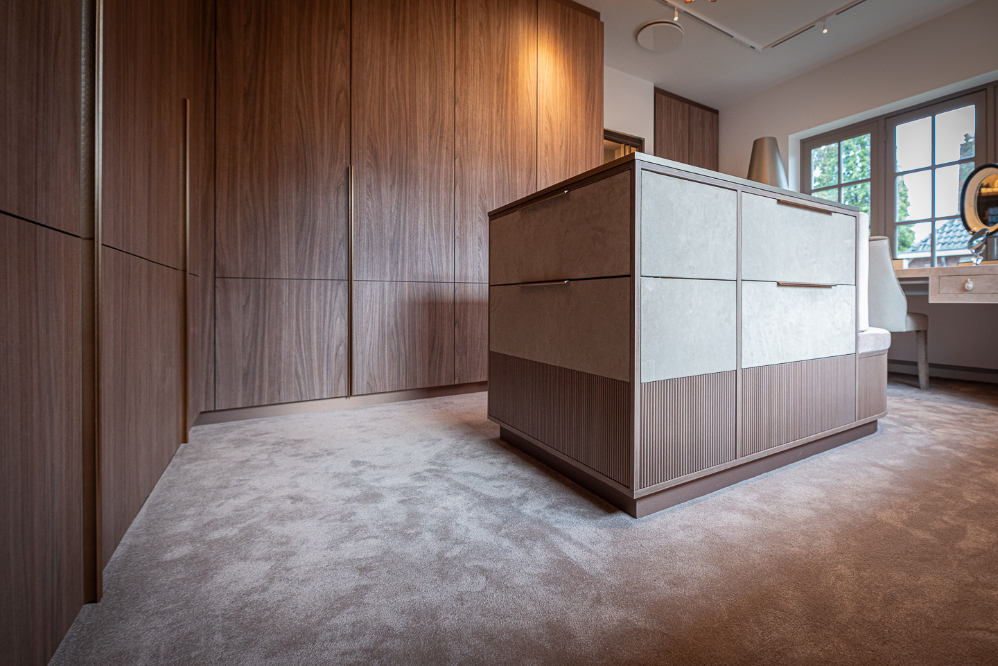In deze woning zijn twee volledig gepersonaliseerde walk-in closets gerealiseerd, elk met zijn eigen karakter en functies.