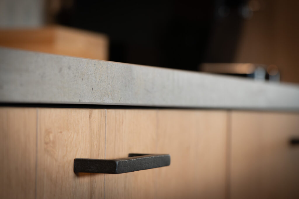 Deze landelijke keuken in het mooie dorpje Oploo straalt warmte uit en combineert dit met moderne functionaliteit. De houten kasten en het royale kookeiland, uitgevoerd in vlak eikenfineer rustiek met een V-groef en grof geborstelde afwerking, geven de ruimte een tijdloze en natuurlijke uitstraling. Het keramische werkblad en de vlak ingebouwde spoelbak zorgen voor gebruiksgemak én een strak geheel. De subtiele, matzwarte handgrepen van Dauby sluiten hier perfect bij aan en versterken de landelijke charme zonder afbreuk te doen aan het moderne karakter van de keuken.